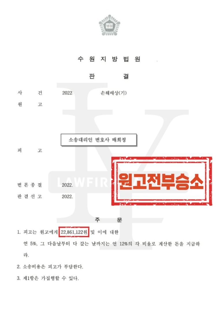 * 사건번호 수원지방법원 2022----손해배상(기)