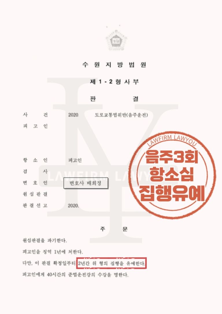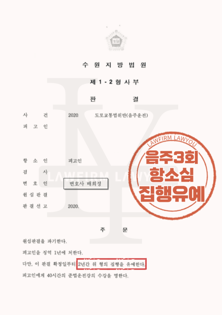 [음주운전 3회 항소심 집행유예 성공사례]