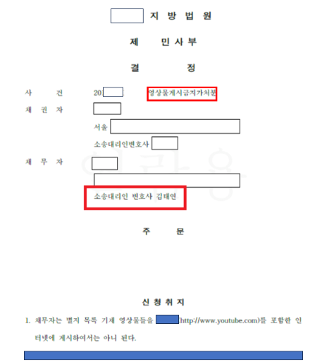 의뢰인분께서는 유튜브에서 방송 활동을 하시는 고객님께 다른 유튜버가 고객님 채널에 올린 영상을 삭제해달라는 청구를 법원에 신청하여 소장을 송달받고 오신 경우입니다.