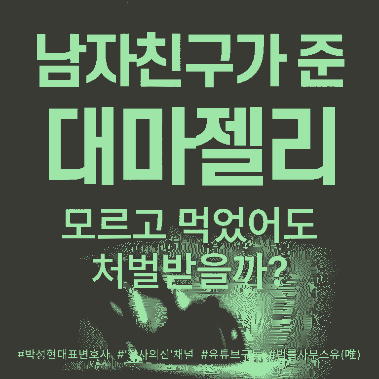 ![[형사의신 카드뉴스] 남자친구가 준 대마젤리 몰라도 처벌받을까?](/_next/image?url=https%3A%2F%2Fd2ai3ajp99ywjy.cloudfront.net%2Fuploads%2Ftitleimage%2Foriginal%2F5b0d2c9bc83e0e74abe3c405-original.jpg&w=3840&q=75)