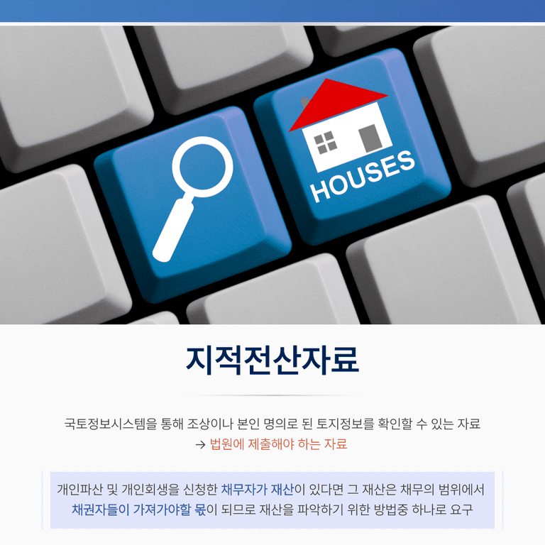개인파산이나 개인회생을 진행할 때 요구하는 자료 중 지적전산자료가 있습니다.