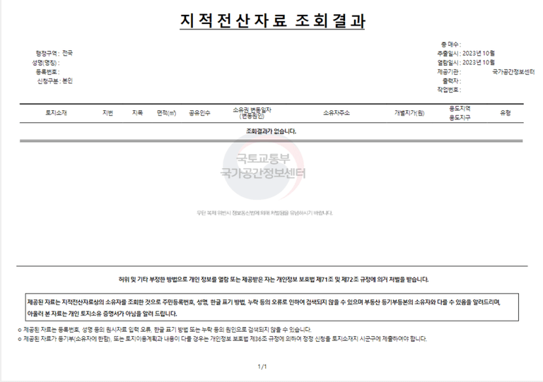 국토정보시스템을 통해 조상이나 본인 명의로 된 토지정보를 확인할 수 있는 자료를 의미합니다.