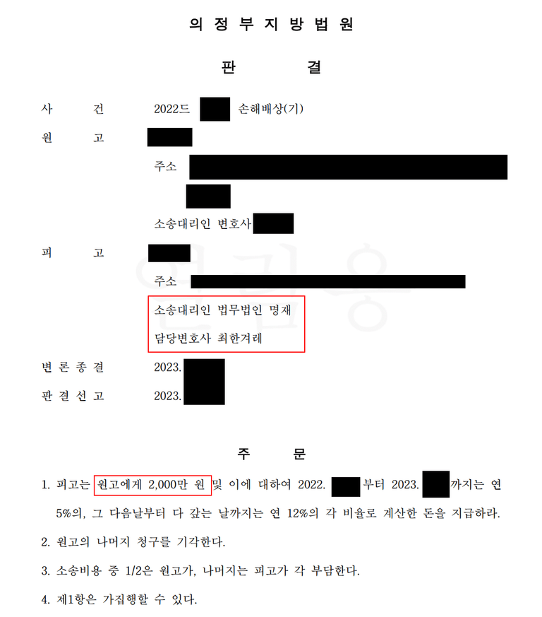3. 결과피고는 원고에게 위자료 2천만 원을 지급하라는 판결이 나옵니다.