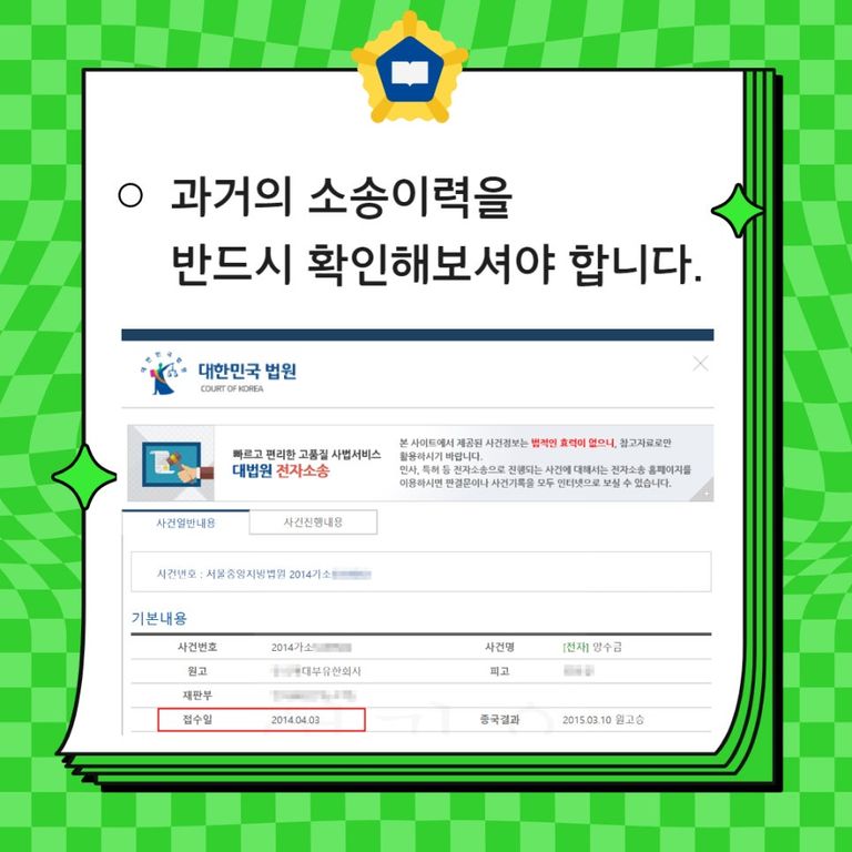 과거의 소송이 조회되었다면, 두 가지를 잘 확인해보셔야 합니다.