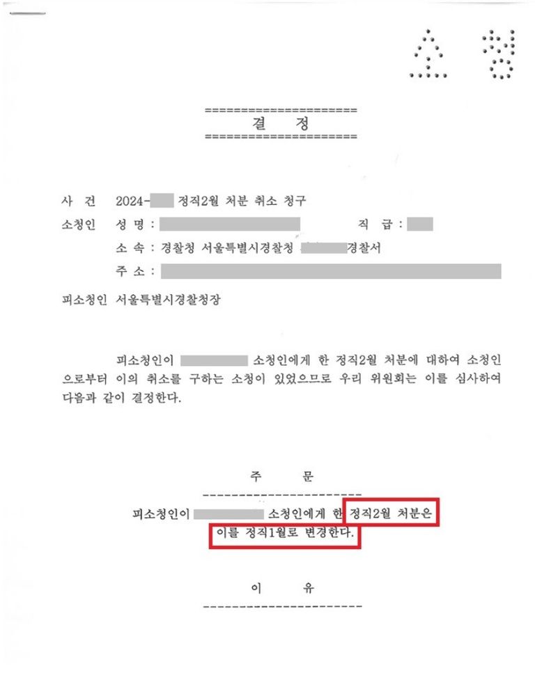 아래와 같이 보기드물게 음주운전 정직2월의 징계가 감경되셨습니다.