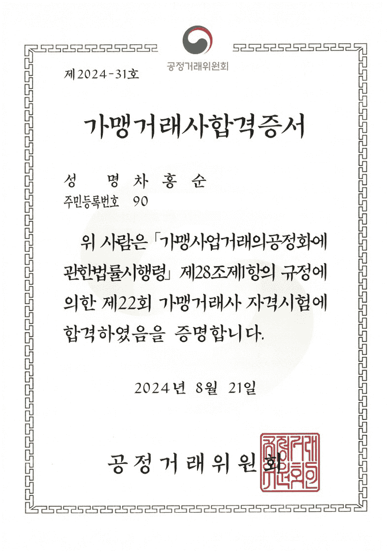 따라서 가맹본부나 가맹사업자, 가맹희망자께서는 수원 가맹거래사와 수원 프랜차이즈 전문변호사의 도움을 받아 해당 서류들을 충분히 검토하고, 계약 내용에 대한 법적 자문을 받는 것이 중요하다고 할 것입니다.