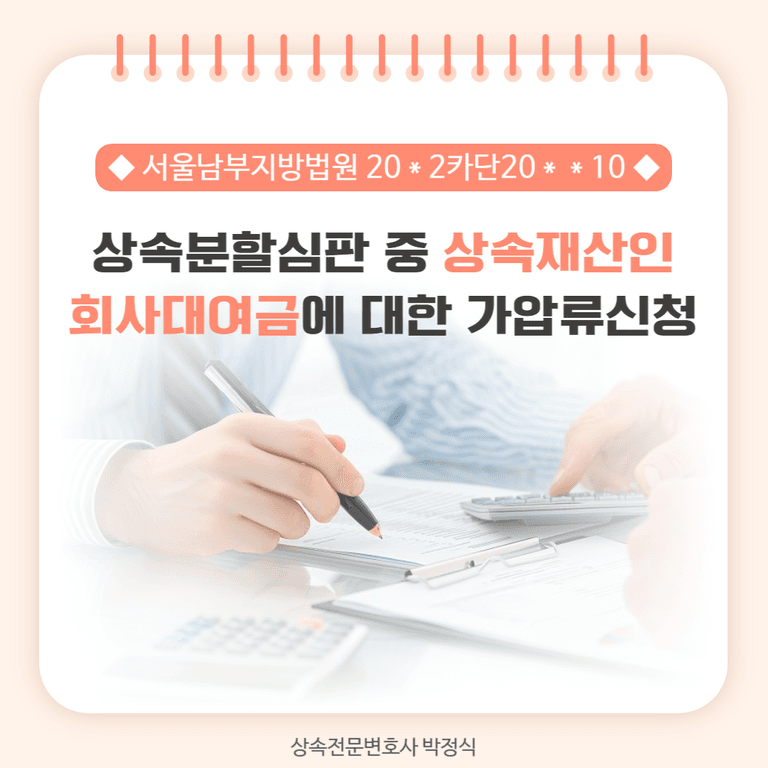이에 채권자는 상속재산분할심판청구를 하는 한편, 피상속인으로부터 상속받은 채권을 보전하기 위하여 이복형제가 운영하는 채무자 회사에 대한 채권자의 상속분을 확보하기 위하여 상속재산인 대여금채권에 대한 가압류 신청을 한 사건입니다.