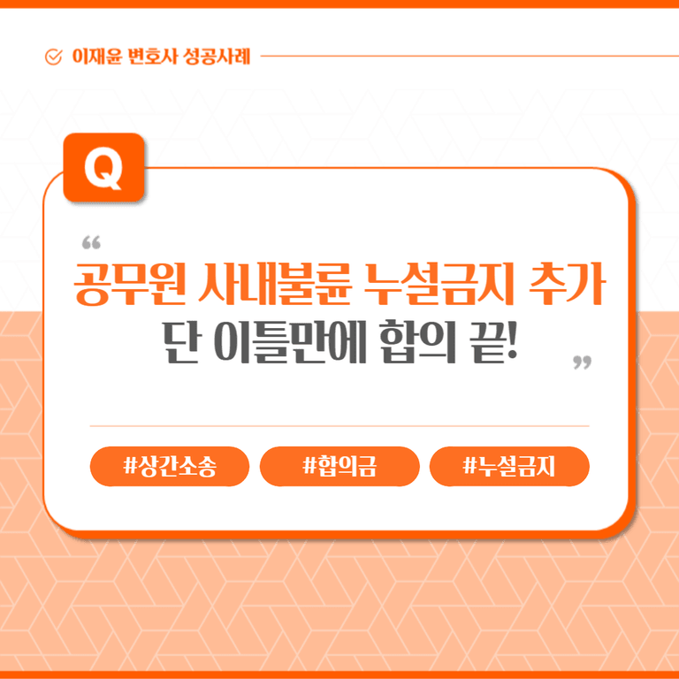 상대방이 요구한 금 5,000만 원은 일반적으로 상간으로 인한 불법행위의 경우 법원에서 인정되는 위자료의 액수의 2배에 달하였던바, 과도한 요구였습니다. 그러나 의뢰인은 공무원이라는 직업의 특성상 부정행위 사실이 근무지에 알려지게 되는 경우 징계를 받을 가능성이 있었으므로 일반적인 수준보다 많은 금액을 지급하면서라도 신속하게 합의를 마무리하기를 희망하였습니다.본 법무법인은 부정행위의 피해자인 상대방의 감정을 충분히 다독이며 신속하게 합의를 이끌어나간바, 단 이틀만에 절반 가량을 감액하였습니다.