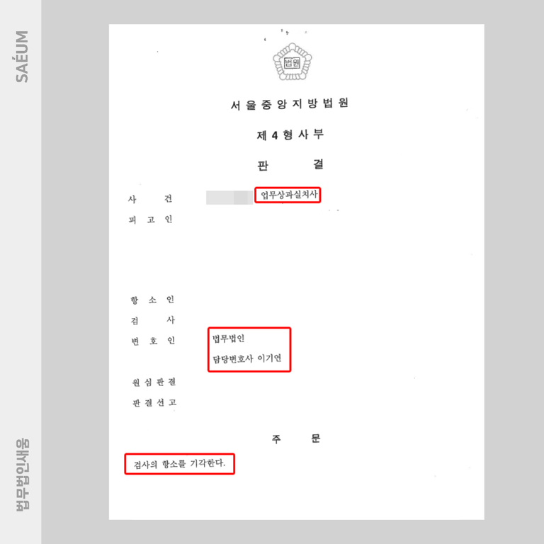 이에 1심의 선고가 너무 가벼워 부당하다는 주장이 이유 없다고 판단, 검사 항소 기각 판결을 내리게 되었고 이를 통해 A씨는 업무상 과실치사 사건의 1심 판결을 확정 지을 수 있었습니다.