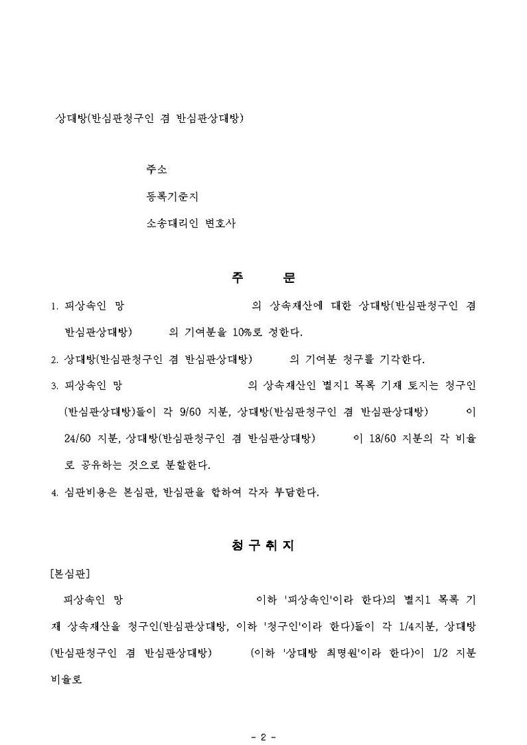 대습상속인의 상속분을 안내해 드렸고, 상대방의 제시안은 부당하다는 점을 알려드렸습니다. 다만, 상대방들은 망인의 자녀로 기여분을 주장할 수 있는 상황이었습니다. 이에 상대방 기여분 주장을 방어하고, 토지의 감정 평가를 진행하여 우리가 받을 금원이 상당하다는 점을 주장하기로 하였습니다.