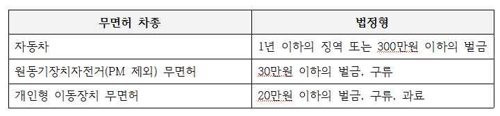 2021년 도로교통법 개정으로 전동퀵보드를 이용하기 위해서는 원동기장치자전거를 운전할 수있는 면허를 취득해야 하고, 이러한 면허 없이 전동퀵보드를 운전한 경우 무면허운전에 해당합니다. 이에 따른 형사처벌도 규정하고 있으나 다른 원동기장치자전거와 달리 법정형을 다소 낮게 정하고 있습니다. 다만, 범칙행위의 처리 특례가 적용됩니다. 그리고 제1종 보통면허나 제2종 보통면허로도 원동기장치자전거를 운전할 수 있으므로(도로교통법 시행규칙 제53조 별표 18 참조) 이러한 면허로도 전동퀵보드를 운전할 수 있지만, 이러한 면허의 효력이 정지된 경우에는 전동퀵보도를 운전할 수 없고, 음주상태에서 전동퀵보도를 운전한 경우 이를 운전할 수 있는 모든 면허가 취소될 수 있습니다.