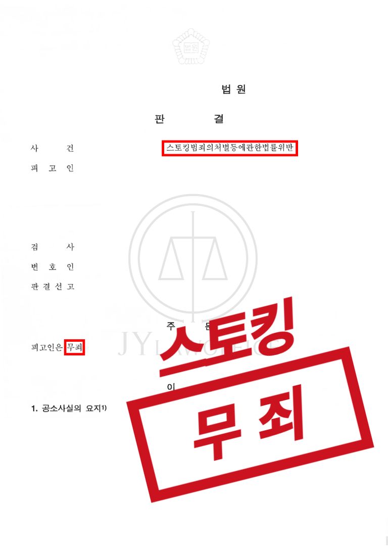 본 사건의 의뢰인은 '스토킹'혐의로 기소된 상황이며, 사건의 진실성을 규명하기 위해 본 JY법률사무소를 방문하셨습니다.