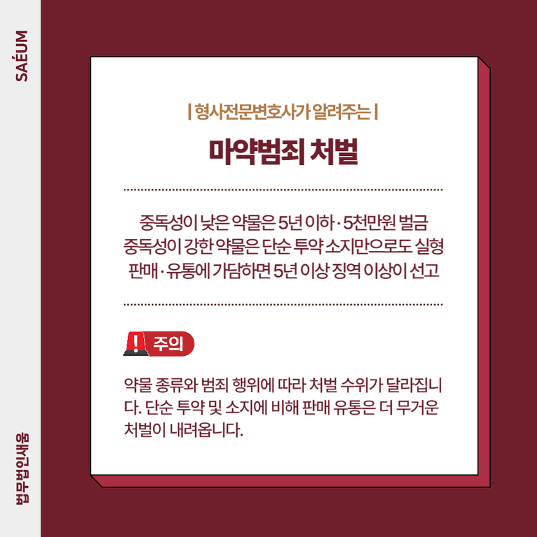 따라서 마약 투약이나 소지에 비해서 더 무거운 처벌이 내려오게 되는 것입니다.