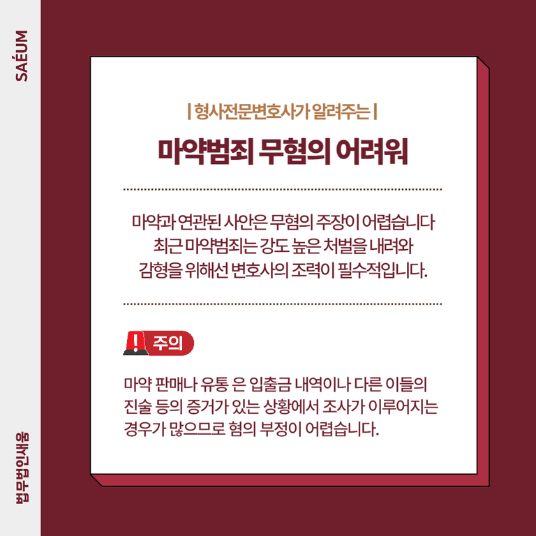 불법 약물과 연관된 사안의 경우 우선 무혐의 주장이 어렵다는 특징이 있습니다.