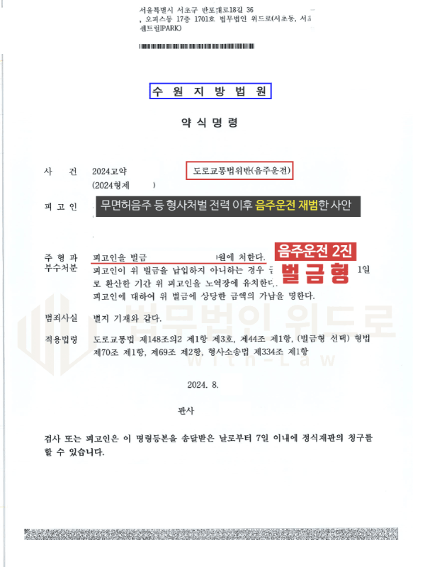 음주운전 재범의 경우, 재판에서 징역형 이상의 판결 사례가 늘어나고 있는 만큼 의뢰인은 곧바로 위드로 김경환 검사출신변호사의 조력을 받기로 결정했습니다.