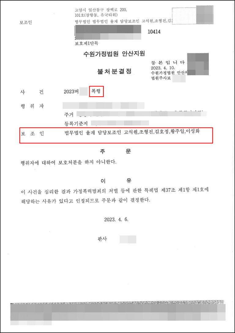 보호처분 불처분 결정을 받았습니다.