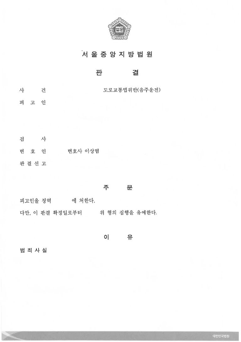 준비된 양형자료를 토대로 변론을 준비한 결과, 1) 피고인이 음주운전을 하게 된 경위에 참작할만한 사정이 있는 점, 2) 운전거리가 길지 않았고, 사고를 유발하지 않는 점, 3) 차량을 처분하고 대중교통을 성실히 이용하고 있는 점, 4) 피고인의 선처를 지인들이 탄원하고 있는 점, 5) 피고인이 가족들을 부양해야하는 점 등이 참작되어 집행유예를 선고받아 구속을 피할 수 있었습니다.