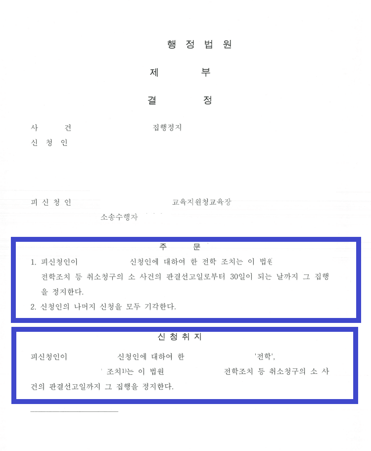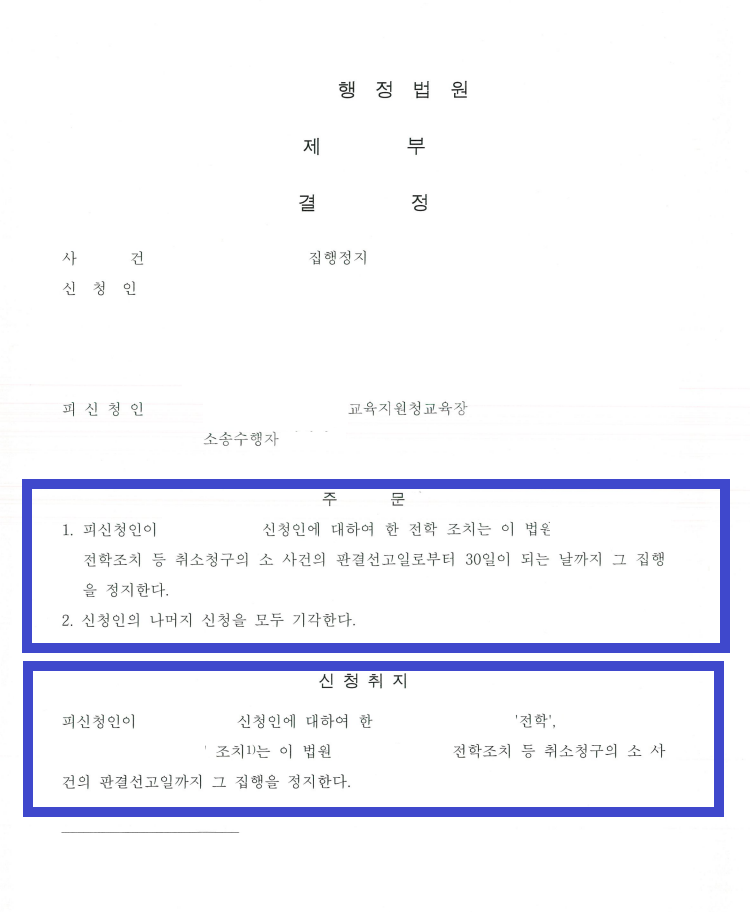 이번 글에서는 행정소송을 통해 전학 조치에 대해 집행정지를 이끌어낸 성공 사례를 소개해드리겠습니다.