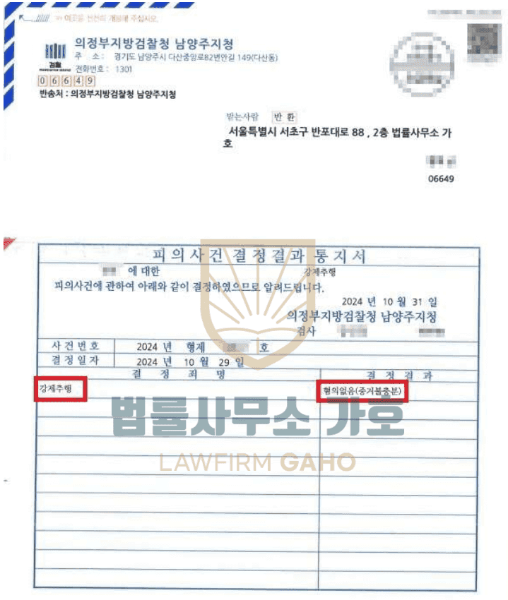 의뢰인은 추행의 고의가 전혀 없었고 매우 억울하다는 입장이었지만, 두 사람의 접촉이 나오는 CCTV가 존재하고 해당 사건 발생 전후로 의뢰인의 동선이나 행동이 일반적인 경우와 달랐으며 해당 사안이 성범죄로서 법정형이 10년 이하의 징역 또는 1천500만원 이하의 벌금형으로 규정되어 있어 방어가 쉽지 않은 사안이었습니다. 이에 가호는 구체적인 사실관계를 분석하고 경찰조사 전 [의뢰인과 미팅]을 하고 특히 [조사 전 시뮬레이션]을 장시간 진행한 뒤 경찰조사를 성공적으로 마쳤으며, 이후 강제추행에 대한 관련판례를 분석한 결과와 유사사례에 대한 언론보도까지 첨부한 [변호인 의견서]를 제출하는 등 전방위적인 조력을 진행하였습니다.