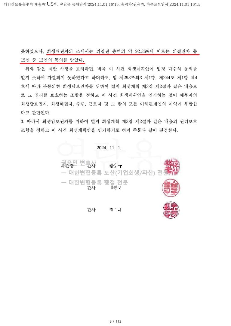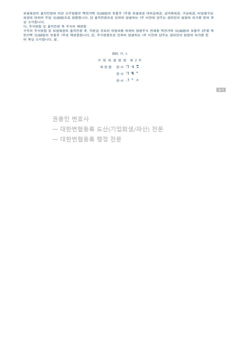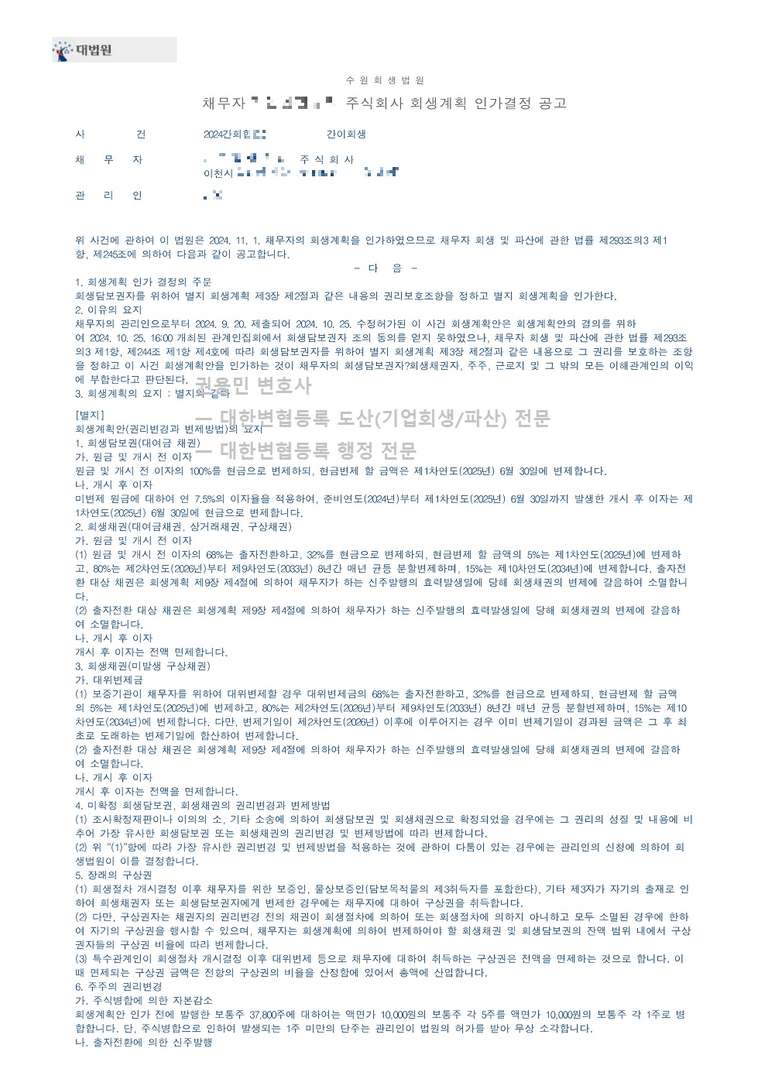 2024. 11. 01. 법인회생강제인가 - 수원회생법원