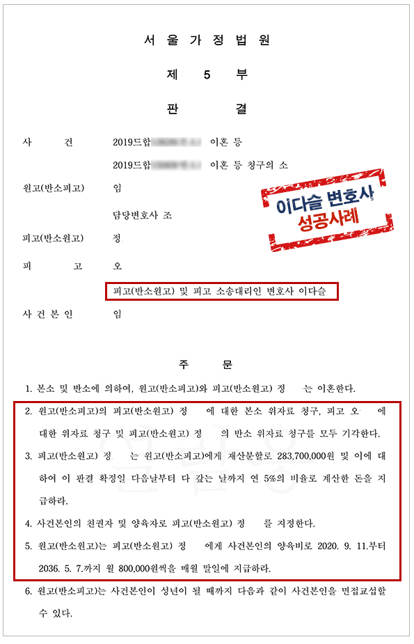 또 위자료청구에 대한 부분에 있어서도, 위 합의서에 '원고와 피고는 위자료에 관하여 서로 청구하지 않기로 합의한다.'는 조항이 있는바, 이는 위자료 부분에 대한 부제소합의로 볼 수 있으므로, 이 사건 소 중 위자료 청구는 위 부제소합의에 위배되는 것으로서 권리보호의 이익이 없어 부적법하다'고 판단, 결국 원고의 청구는 모두 각하되었고, 소송 비용 역시 원고부담으로 패소한 사례입니다(부산가정법원 2015드합2XXXXX).