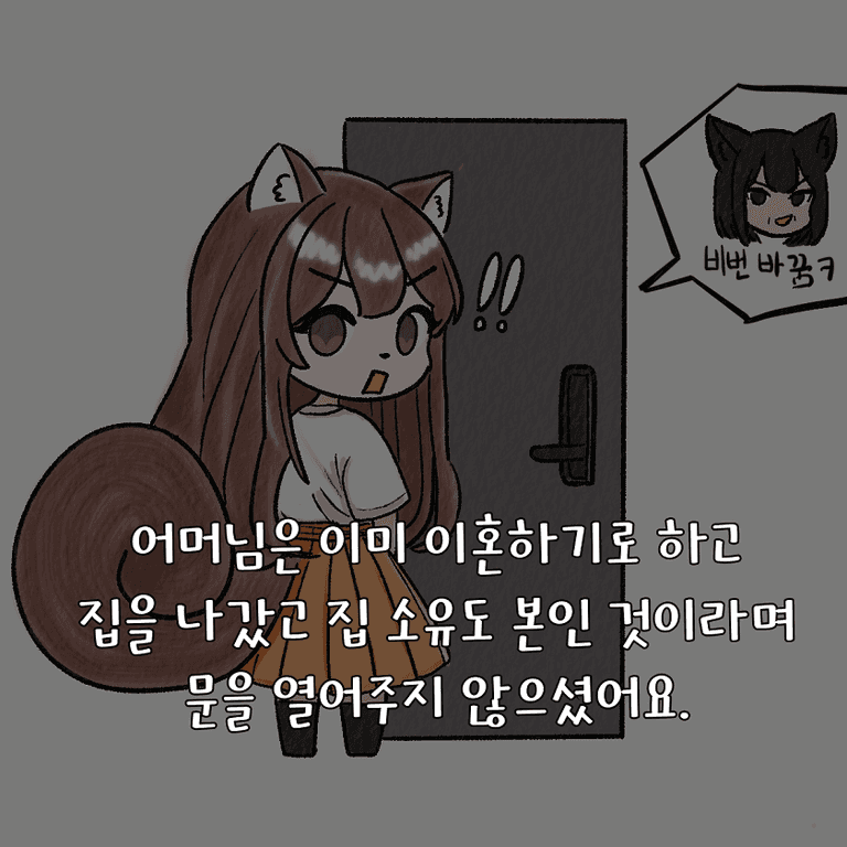 집 소유도 본인 것이라며 문을 열어주지 않으셨어요.