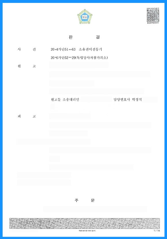 본 사건을 위해서 그 전제조건인 혼인무효가 확정되어야 하므로 가정법원에서 혼인무효확인판결을 받은 다음 상속회복을 청구하였습니다.
