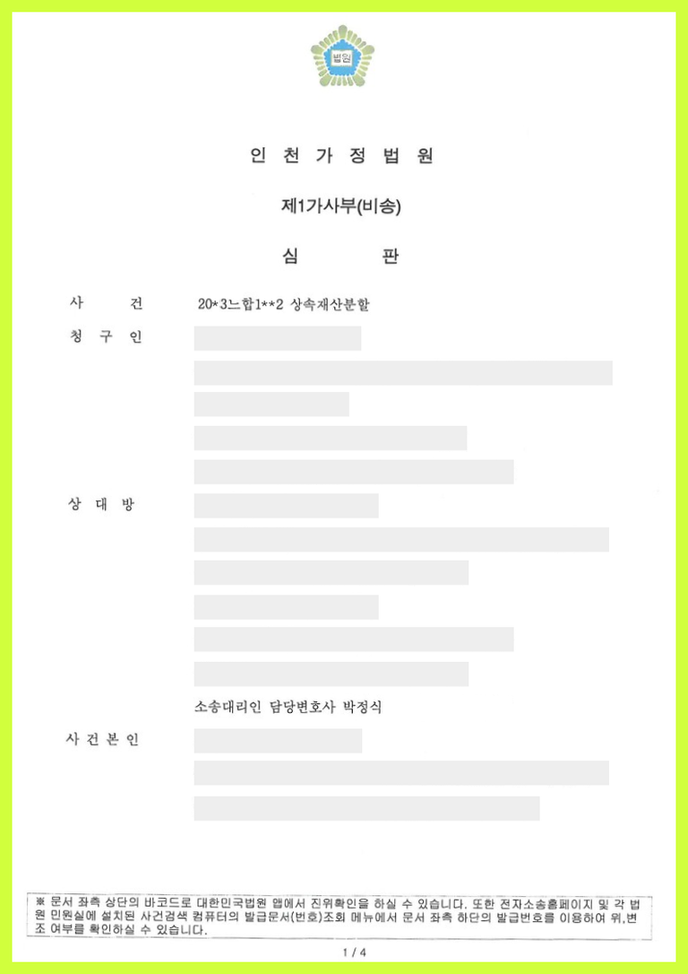 안녕하세요, 상속전문변호사 박정식입니다.