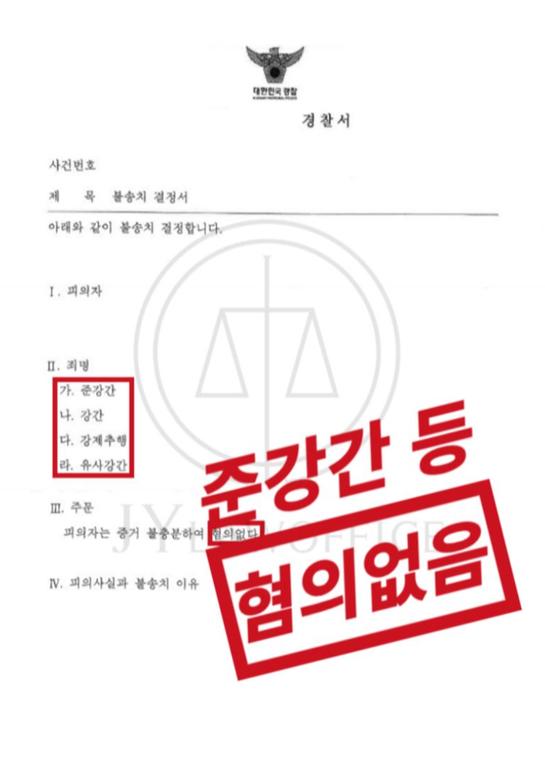 이와 같은 변호인의 노력에 따라, 의뢰인은 '혐의없음'을 처분받고 무사히 사건을 종결시킬 수 있었습니다.