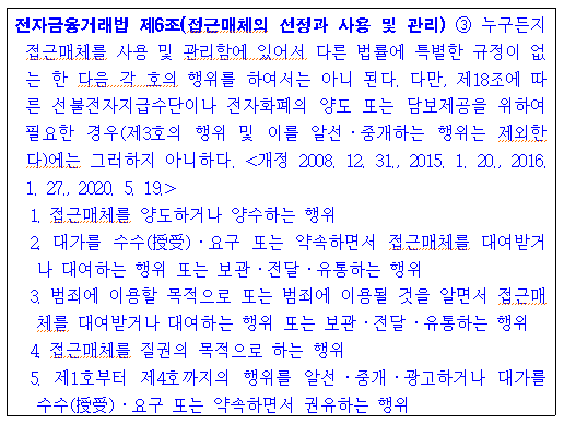 그래서 이들에 대해서는 사기죄가 성립하기는 어렵고 전자금융거래법위반죄가 성립하는 것에 그칩니다.