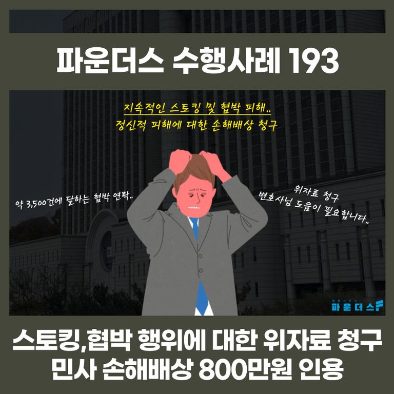 의뢰인 사건과 같이 스토킹 혐의와 협박 혐의 등의 손해배상 소송을 진행하고자 한다면 법적 조력을 받으시어 진행해 나가시길 바랍니다.