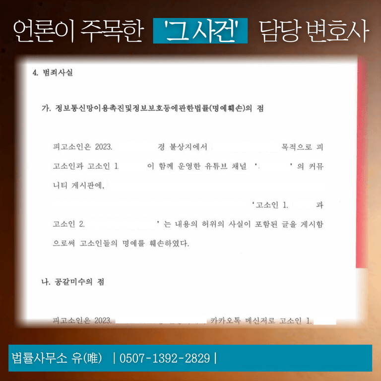 ![📌[인플루언서 사이버명예훼손 스토킹] 확실한 대응이 필요합니다](/_next/image?url=https%3A%2F%2Fd2ai3ajp99ywjy.cloudfront.net%2Fuploads%2Ftitleimage%2Foriginal%2F5cf416b01267e04485e6631c-original.jpg&w=3840&q=75)