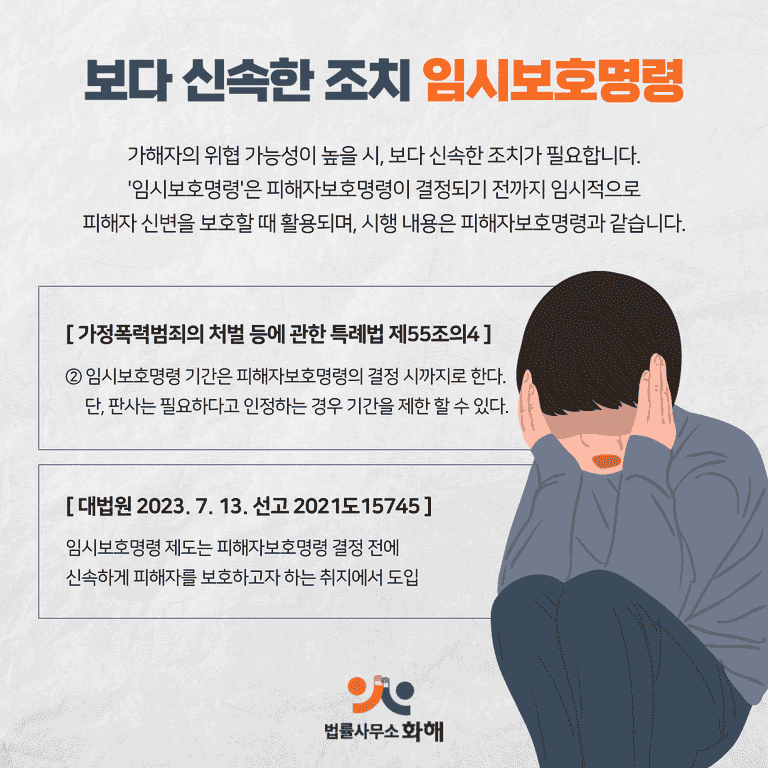 ‘임시보호명령’은 피해자보호명령이 결정되기 전까지 임시적으로 피해자의 신변을 보호할 때 활용됩니다.
