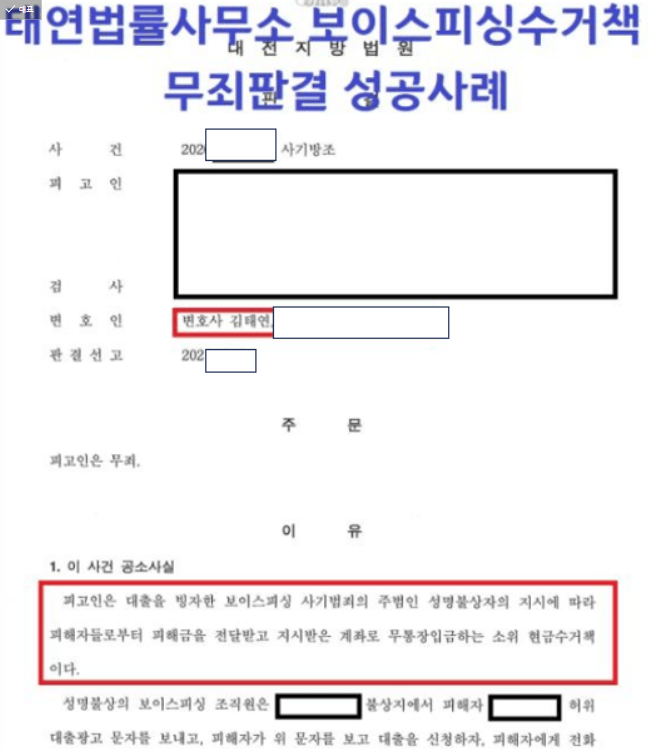 보이스피싱전문변호사님과 함께한 성공사례 소개해드리도록 하겠습니다.