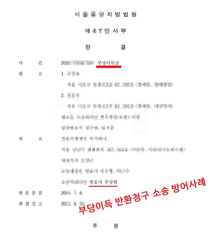 부당이득 반환청구 소송에서 피고를 대리하여 방어에 성공한 사례입니다.