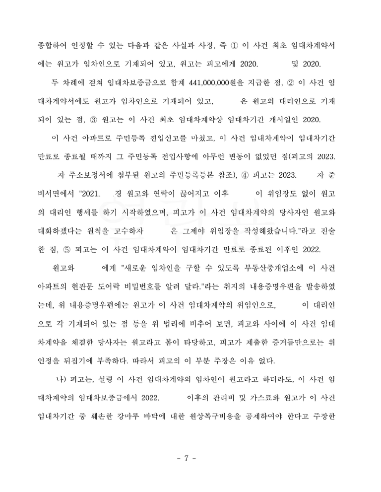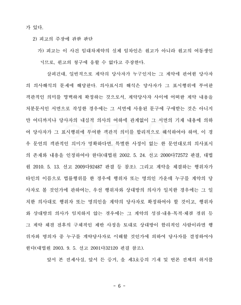 의뢰인은 임대인인 피고에게 임차보증금을 지급한 후 만기가 도래하여 임차보증금 반환을 요구하였으나 피고는 실질적인 임차인은 의뢰인의 동생이지 의뢰인이 아니므로 의뢰인에게 임차보증금을 반환할 수 없다고 거부하여 의뢰인은 저를 찾아오셨습니다.