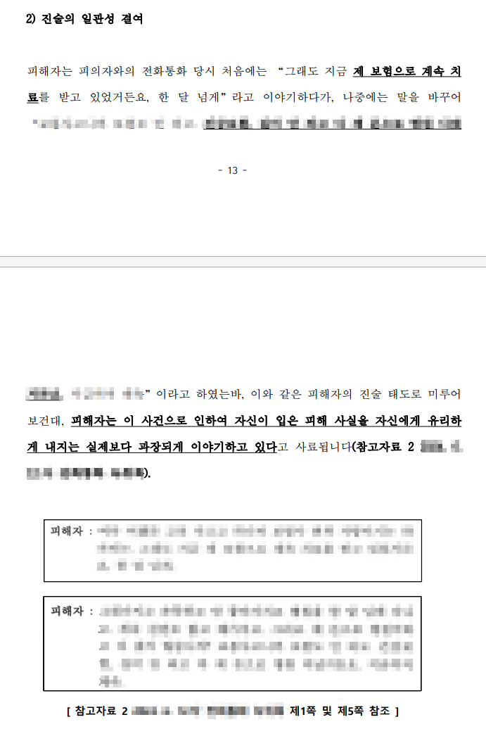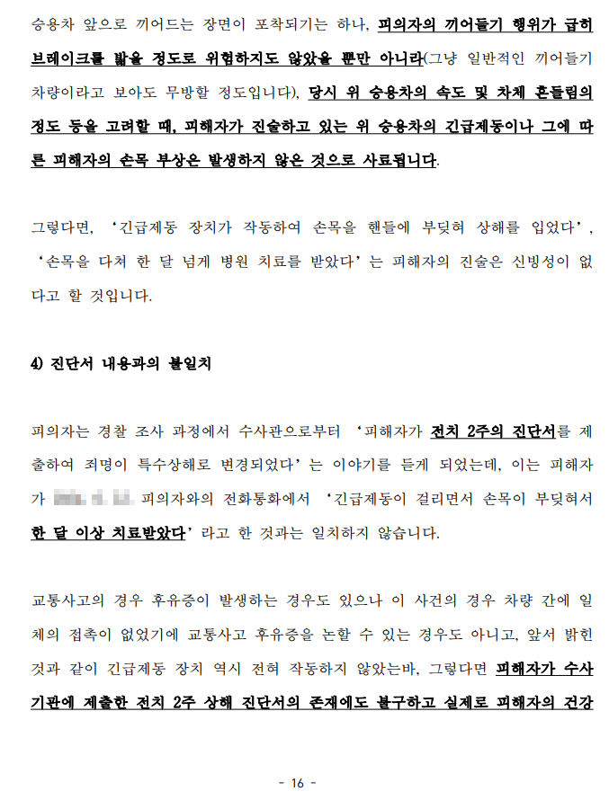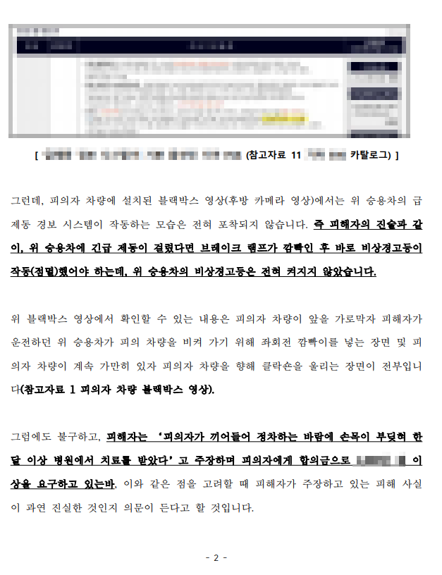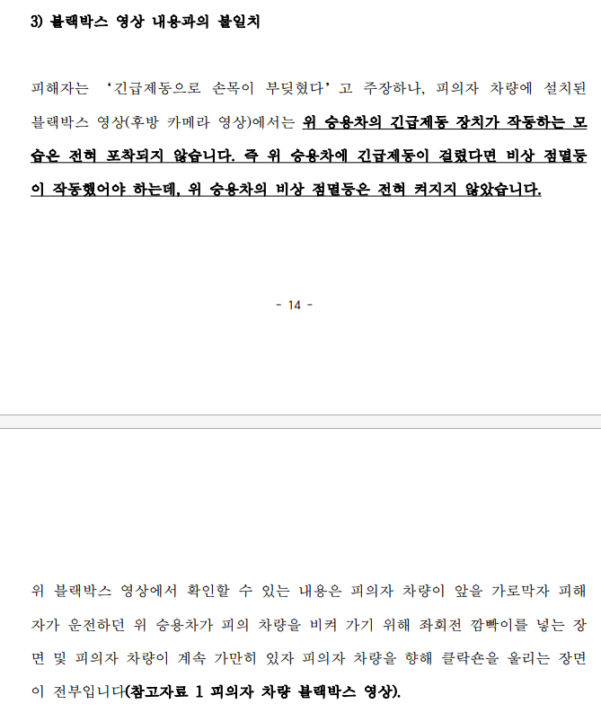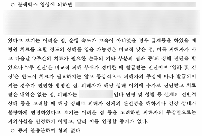 객관적인 증거 자료(블랙박스 영상, 진단서) 내용과도 일치 하지 않아