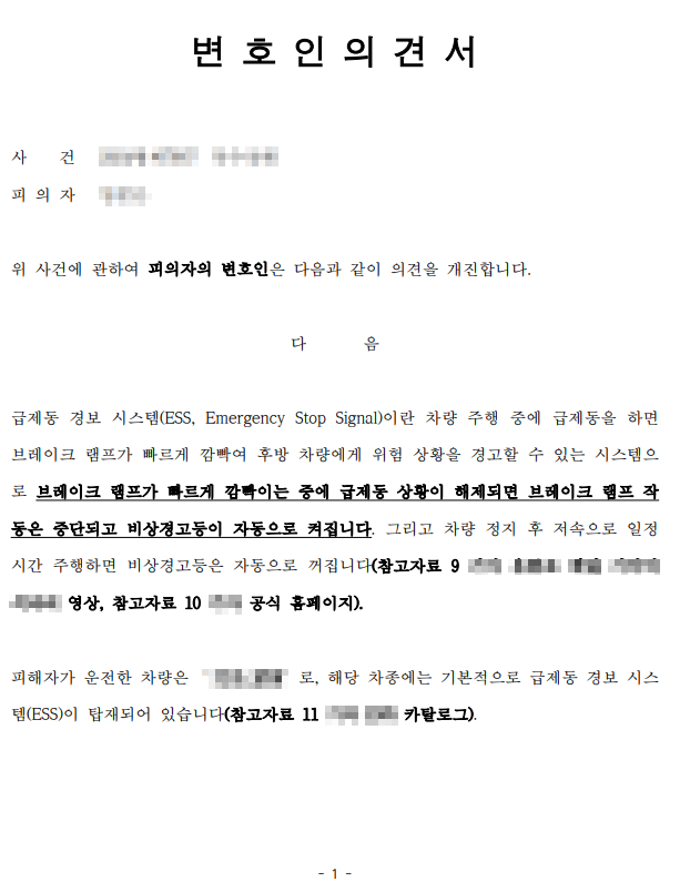 제가 실제 작성한 변호인의견서 중 일부입니다.