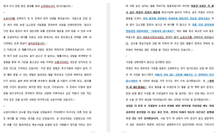 실력 있는 조력자와 제대로 된 상담 1번만 받아봐도 내 상황에서 이끌어볼 최선의 결과를 얻으실 수 있을 거라 생각합니다.