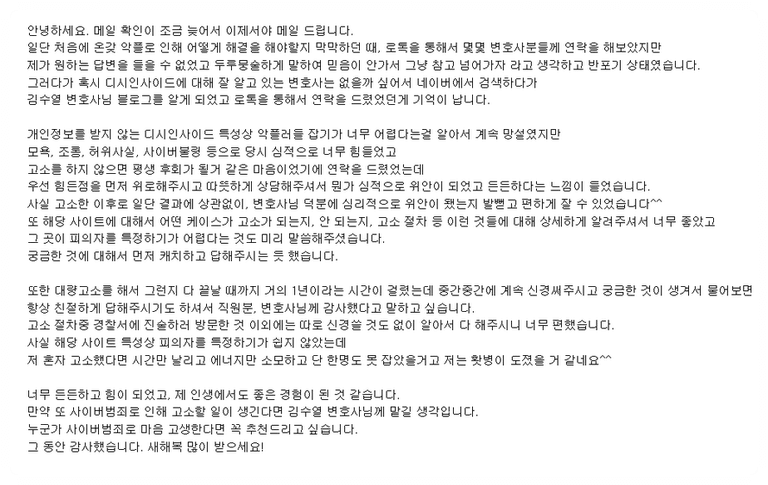 저희를 찾아주신 의뢰인분들의 감사 메일 후기입니다. : )