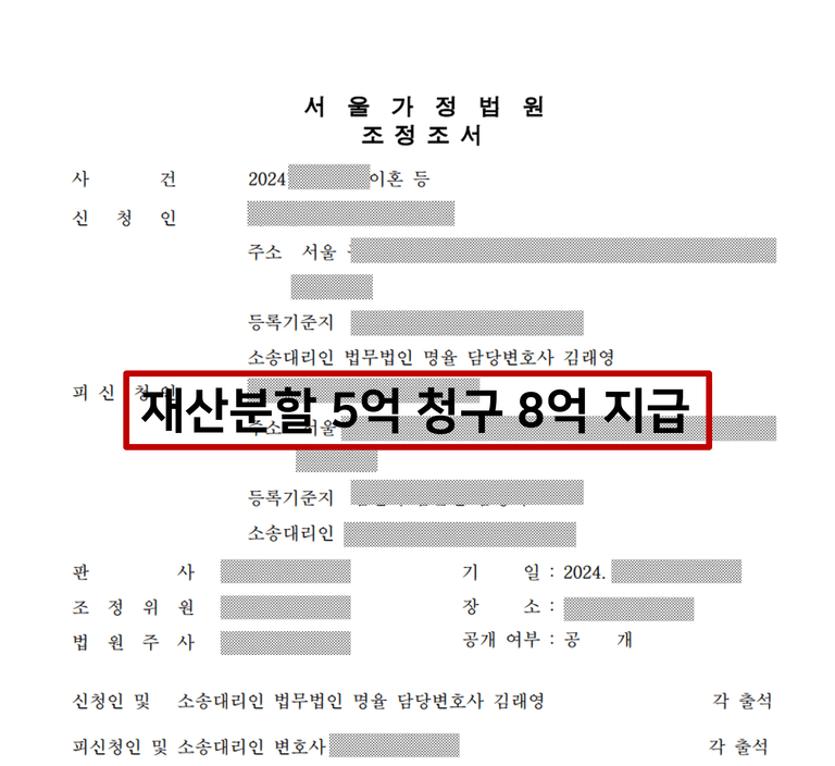 [재산분할 5억 청구, 8억 받아낸 성공사례]
