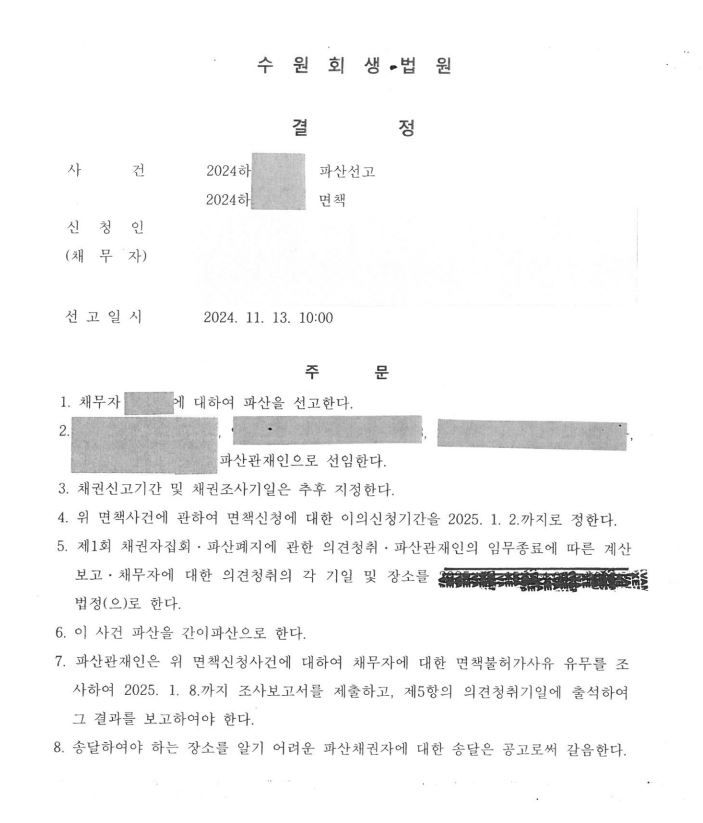 그 결과 재판부에서는 해당 사건을 간이파산 절차로 진행하면서 파산 선고를 하였습니다.
