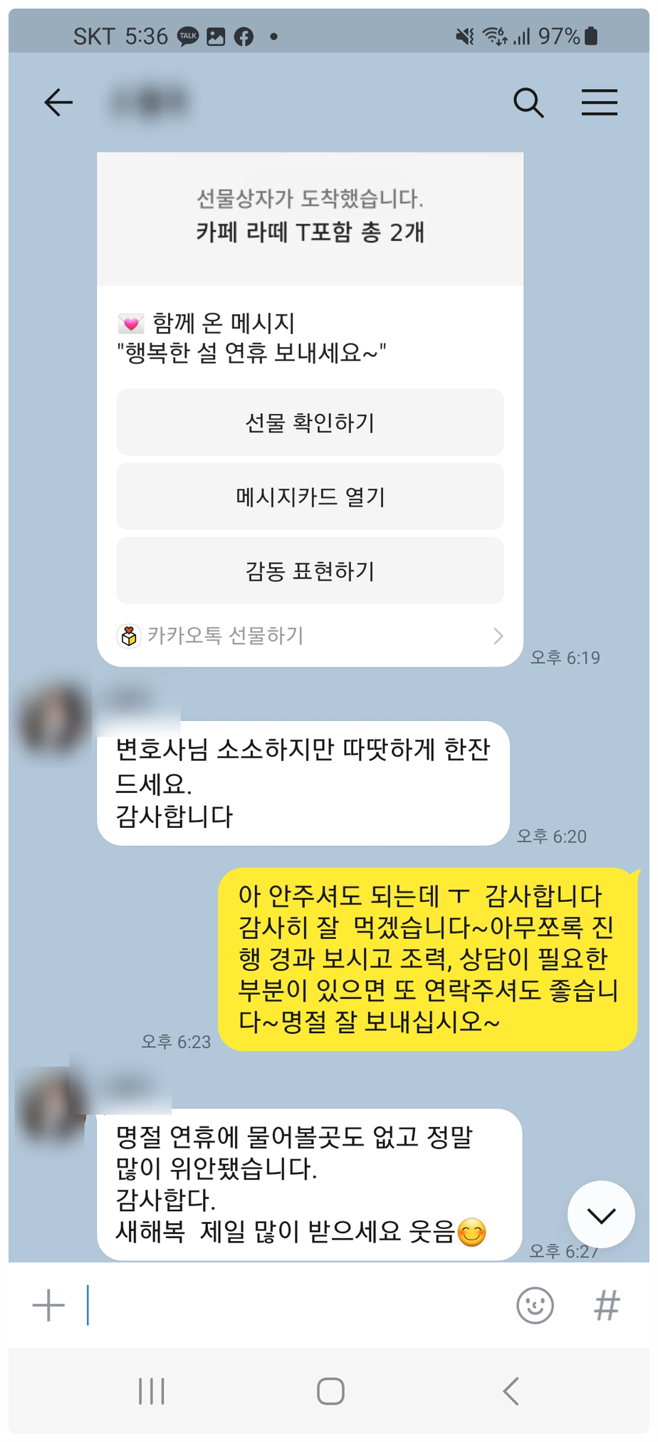 저희를 찾아주신 의뢰인분들의 진심어린 감사 카톡 후기입니다. : )