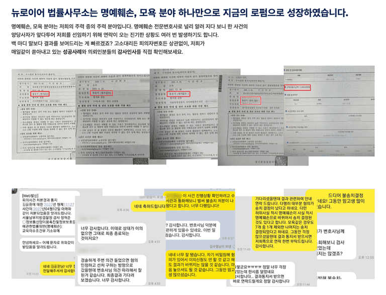 저희는 명예훼손 사건을 특화 해오다 보니 리뷰 고소 사건도 참으로 많이 대리해 드려 왔습니다.