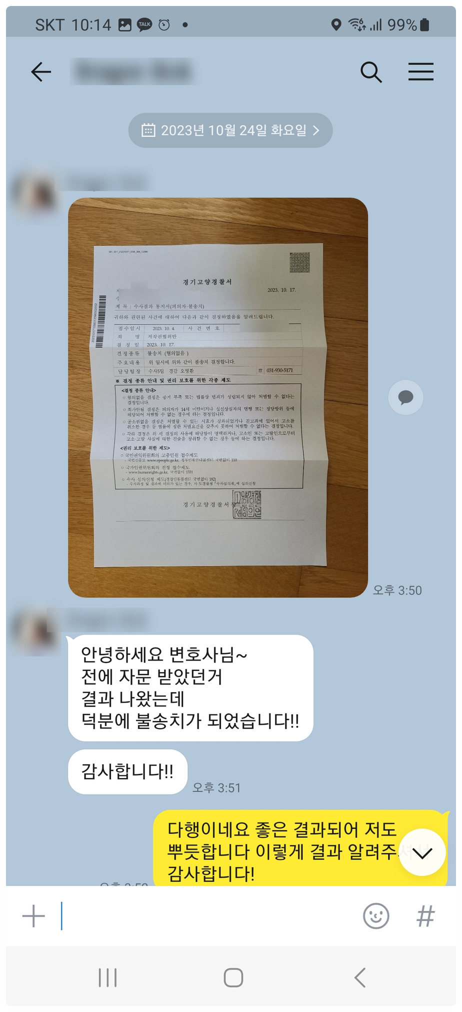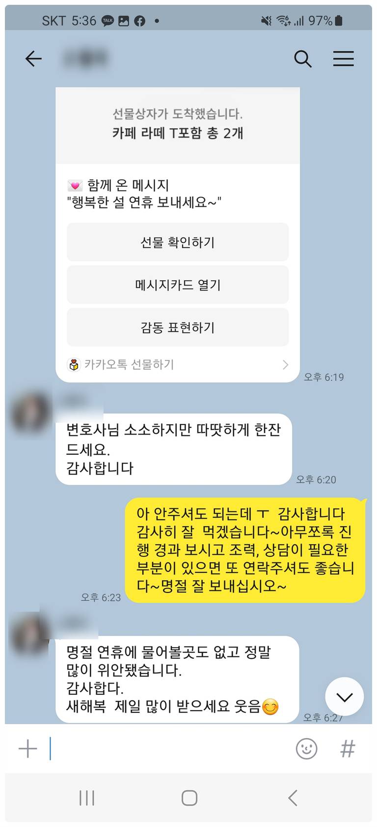 저희를 찾아주신 의뢰인분들의 감사 카톡 후기입니다. : )