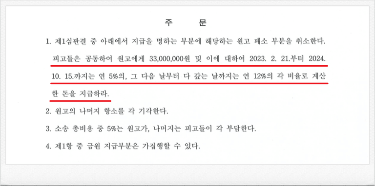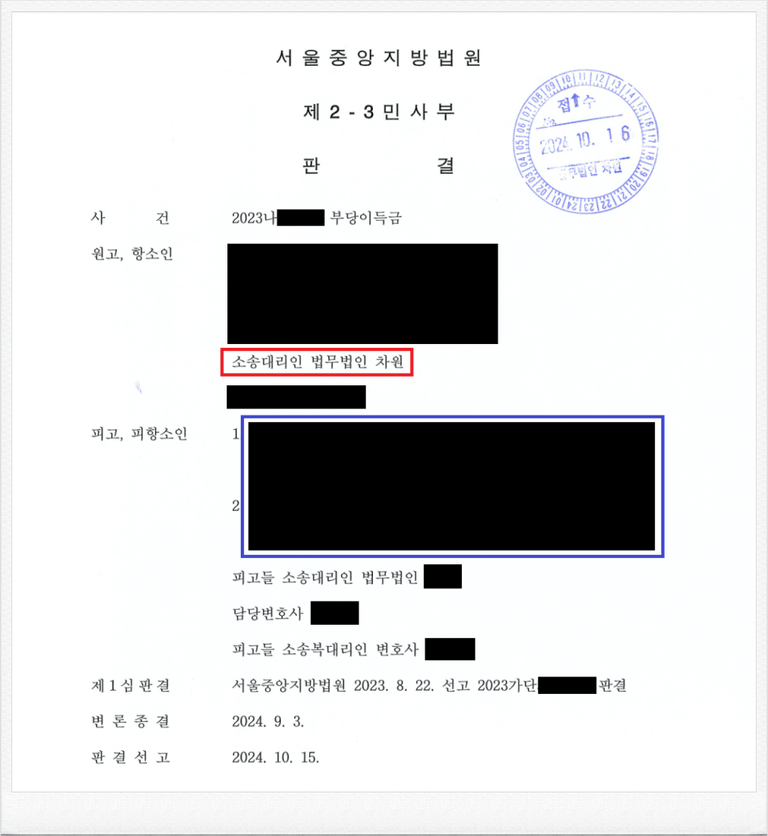 결국, 재판부로부터 피고들은 의뢰인으로부터 기지급 받은 권리금 및 이에 대한 지연손해금을 지급하라는 내용의 판결을 이끌어 내었습니다.