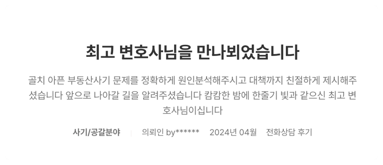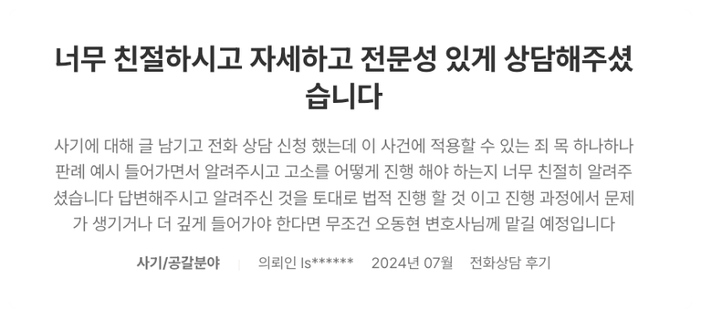 보이스피싱 전담 변호사님의 로톡 후기입니다.