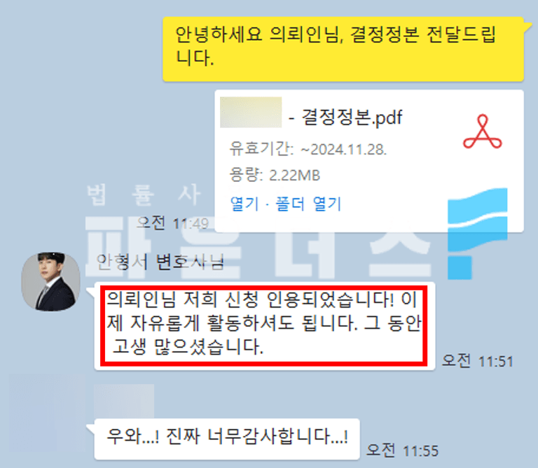 그 결과 재판부는 전속계약효력정지가처분에 대한 인용의 결과로 승소 판결을 내렸고, 의뢰인은 소속사와 전속계약에서 벗어나 자유로운 활동을 할 수 있게 되었습니다.