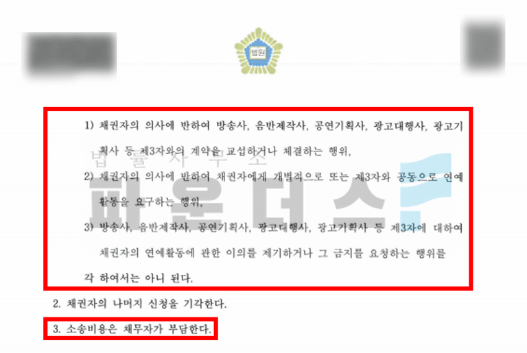 본 법률대리인은 전속계약서의 내용을 비롯하여 전속계약서 이행 실태에 대한 구체적인 정황, 제반 증거자료를 수 차례 요청하여 치밀하게 검토한 후, 다년간의 전속계약서 작성, 검토 및 분쟁 대응 경험을 바탕으로 소속사 측의 합리적인 반박이 어렵도록 전략적으로 법리를 구성하여 법원에 신청서를 제출하였습니다.