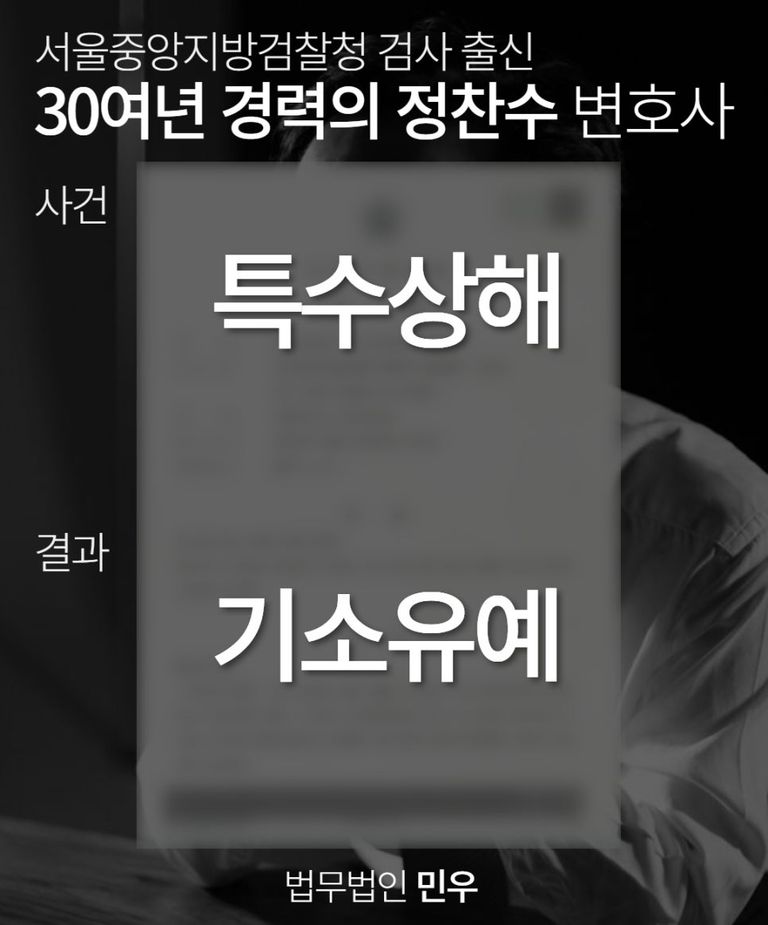 그러므로 특수상해 혐의에 연루되었지만, 기소유예로 선처받고자 한다면, 이때는 성공사례와 감사후기로 실력이 보장된 “검사 출신 정찬수 변호사”에게 상담을 요청하셔서 법적인 조력을 받으시길 바랍니다.